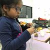 Esa tarde, temprano, realizamos talleres de manualidades, y después vivimos un gran momento. Una de las lechuzas estaba muy cerca en el colegio, y la pudieron observar con sus binoculares. La seguimos a donde se movía, hasta que las dos lechuzas se encontraron en los piquetes del alambrado del colegio, y salieron a cazar.