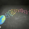 En CP, après avoir visionné une vidéo sur la planète, les élèves ont réalisé des représentations de la terre, un mural avec des papillons monarques en migration et une carte avec un arbre pop-up.