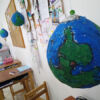 En 5to. grado los alumnos trabajaron maquetas del planeta con las que decoraron buena parte del salón.