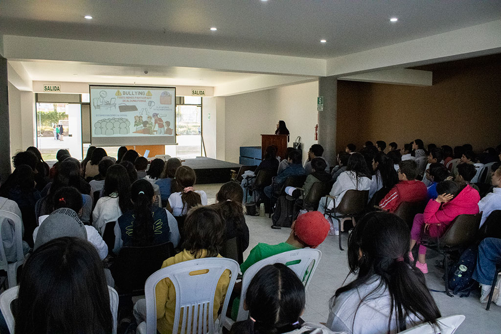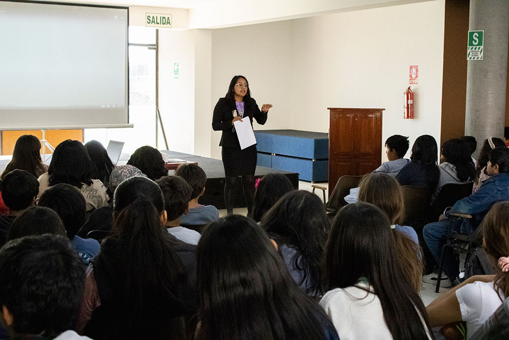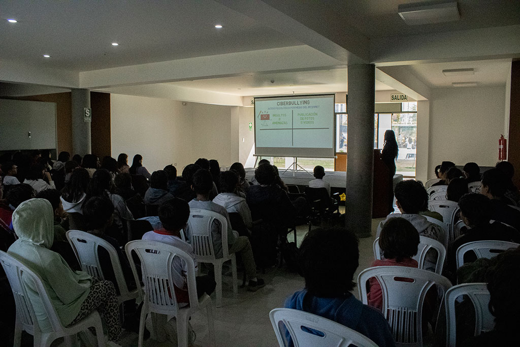 Jeudi dernier, le 10, nous avons reçu la visite de Mme Pamela Girón Alférez, procureure adjointe provinciale à Arequipa. Elle a présenté en détail aux élèves du secondaire le concept de base du cyberharcèlement et ses conséquences juridiques.