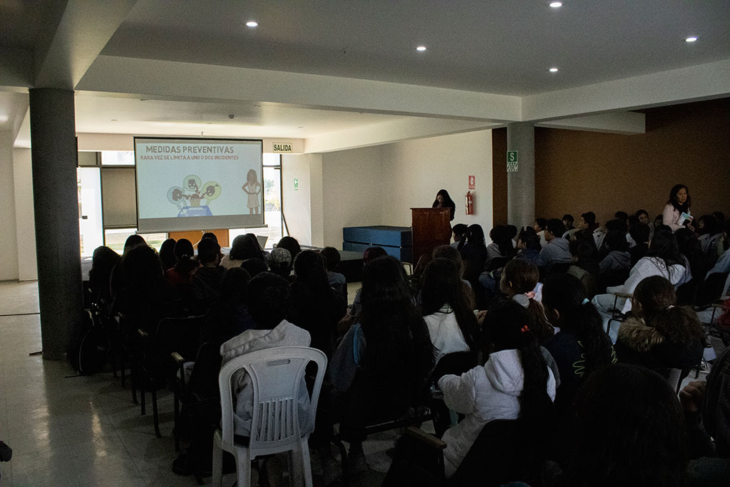 El pasado jueves 10 tuvimos la visita de la Dra. Pamela Girón Alférez. Fiscal Adjunto Provincial en Arequipa. Ella expuso en amplitud, a los alumnos de secundaria, el concepto básico de Cyberbullying y sus consecuencias legales.