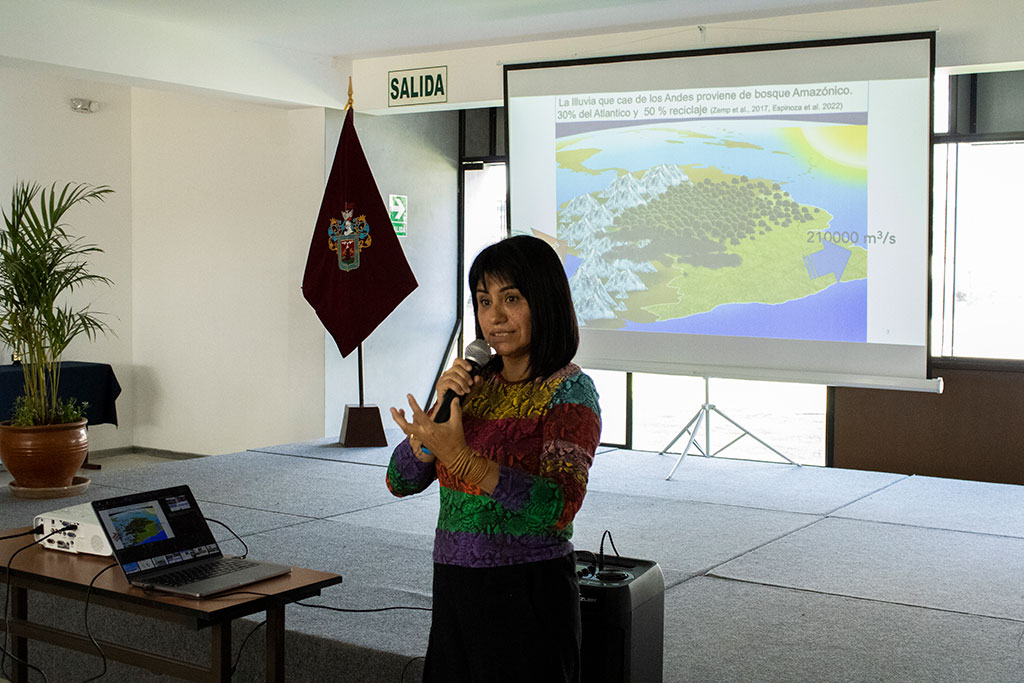 El pasado jueves 6 nos visitó la científica Elisa Armijos, Hidróloga del IRD (Instituto de Investigación para el Desarrollo), quien hace estudios de hidrología y clima en la cuenca amazónica. Compartió con nosotros interesantes experiencias sobre como el cambio climático está influyendo en la vida y desarrollo de las distintas comunidades que viven a la vera del río Amazonas.