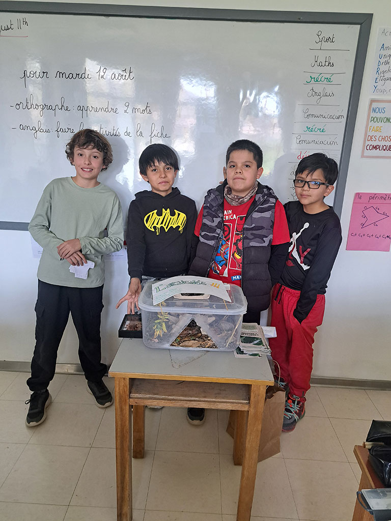 Este periodo, los Quokkas, alumnos de CM2 B (5to. grado de primaria), han podido pasar una etapa más en el proceso del desafío de ciencias de la AEFE. Esta vez sobre la observación y la clasificación de animales pequeños que podemos encontrar y que conviven con nosotros, formando la biodiversidad en los alrededores del colegio, y luego elaborar un refugio que permita atraerlos. Los alumnos elaboraron sus refugios durante las semanas de vacaciones de julio, para luego instalarlos durante la semana de la Feria de Ciencias del colegio y ahora que ya están instalados, hay que ir de manera regular para verificar si atraen efectivamente a los animales elegidos por los alumnos o si necesitan modificaciones en la construcción.