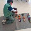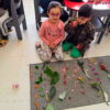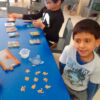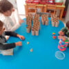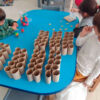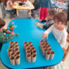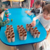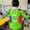 Aujourd’hui les classes des GS ont fêté le 100ème jour de classe. Depuis le début de l’année scolaire, ils comptent quotidiennement les jours passés à l’école, échangeant 10 unités contre 1 dizaine et enfin 10 dizaines contre une centaine. Cela leur permet de prendre conscience du système décimal mais aussi de la quantité que peut représenter 100. Pour célébrer cette journée, chacun a apporté en classe une collection de 100 objets. Ils ont alors vérifié qu’il y en avait vraiment 100 en assemblant 10 paquets de 10 pour faire une centaine. Ils ont également réalisé des activités et des jeux autour du nombre 100, comme former le nombre avec leur corps ou se dessiner lorsqu’ils auront 100 ans.