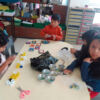 El día de hoy los salones de 5 años han festejado el día 100 de clases. Desde inicio del año escolar han contado diariamente los días pasados en el colegio, intercambiando 10 unidades por 1 decena y finalmente 10 decenas por una centena. Ello permite que tomen conciencia del sistema decimal pero también de la cantidad que puede representar 100. Para festejar este día cada uno ha traído a clases una colección de 100 objetos. Han averiguado que realmente eran 100 armando 10 paquetes de 10 para formar la centena. También han realizado actividades y juegos alrededor del número 100 cómo formar el número con sus cuerpos o dibujarse cuando tengan 100 años.