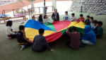 ¿Porqué usar un paracaídas dentro de las clases de educación física ? El uso de manera regular del paracaídas mejora el aprendizaje de habilidades perceptibles, sociales y físicas. Es un juego cooperativo no competitivo y permite a los niños desarrollar el sentido del ritmo.