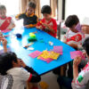 Les enfants de 5 ans étaient fascinés par les grands gratte-ciel de New York, l’art de Frida Kahlo au Mexique et la créativité d’Eric Carle dans l’histoire « La petite chenille gloutonne » ; C’est pourquoi nous avons construit des bâtiments où les lumières ne s’éteignent jamais, fait des autoportraits accompagnés d’aminaux curieux sur nos épaules et nous nous sommes souvenus des parties d’un livre, de l’auteur et de l’importance d’une bonne illustration.