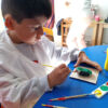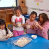Et comme de bons artisans péruviens, nous nous sommes mis au travail ; Certains enfants ont tricoté ensemble un drapeau péruvien, d’autres ont brodé des fleurs et tous ont fait un « Urpicha » (pigeon) en pâte à sel pour se souvenir des paroles de la chanson « Wasichay ».