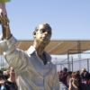 Nous avons fini par découvrir la statue réalisée par un père d’élève, Davis Quintanilla, ainsi que la plaque d’ouverture.