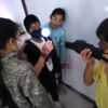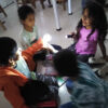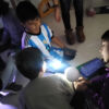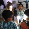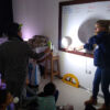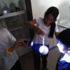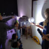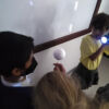 Con un palito, una bola de tecnopor y una linterna, hemos simulado las fases de la Luna. Nuestra cabeza era la Tierra, la bola era la Luna y la linterna el Sol.