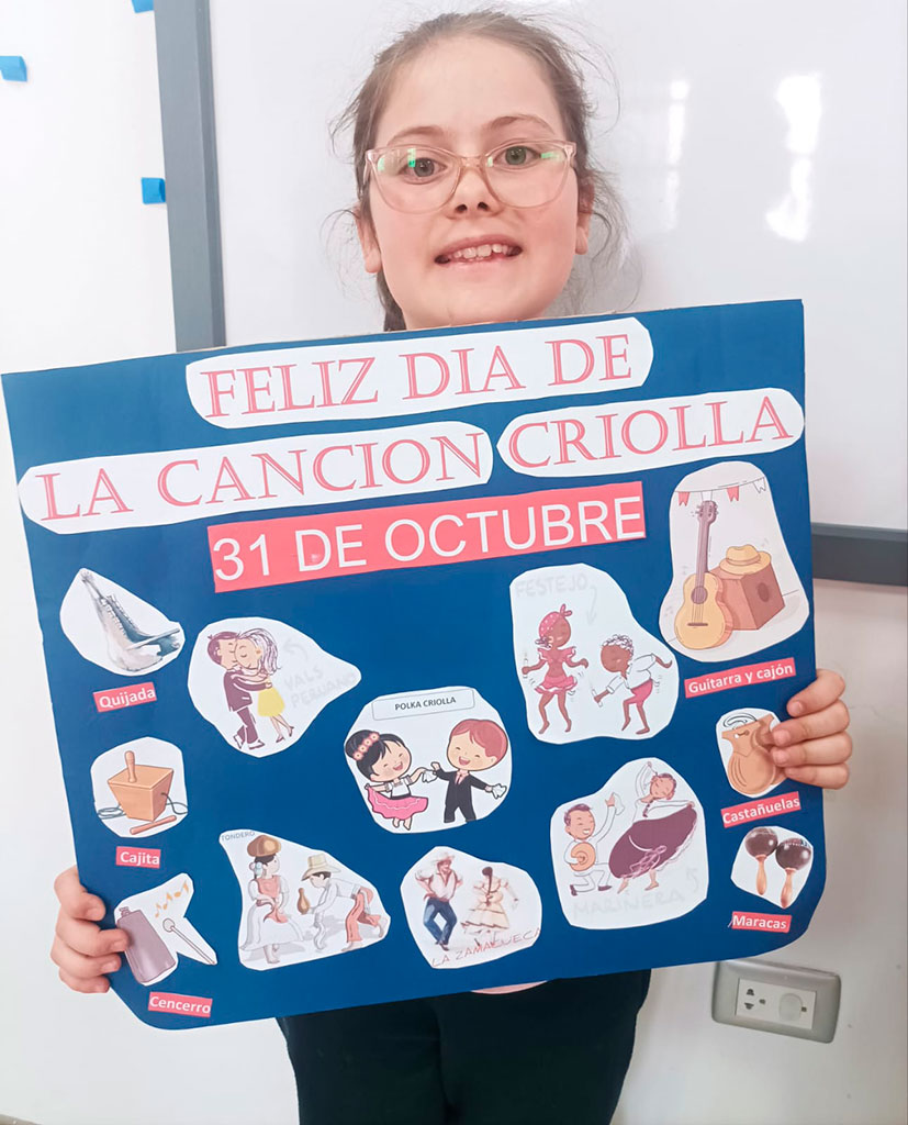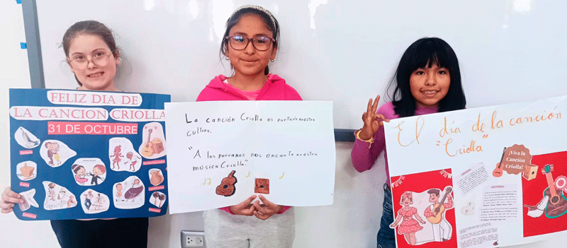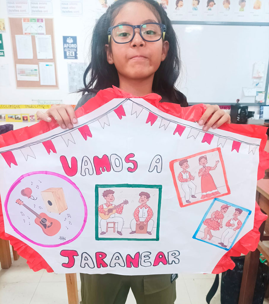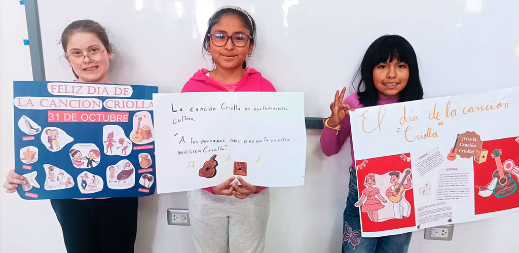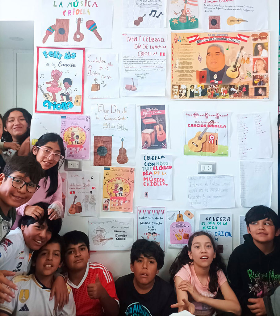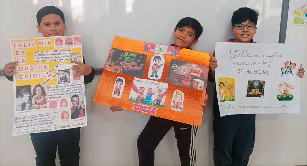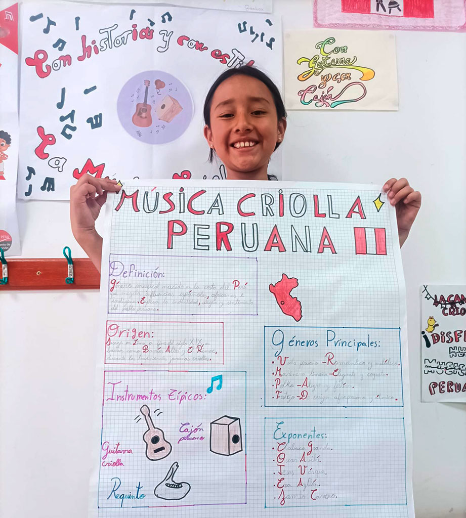 La música criolla es el reflejo de nuestra historia: una hermosa fusión de culturas africana, indígena y europea, que con el paso del tiempo dio vida a una identidad musical profundamente peruana. Por lo tanto, los estudiantes de CM1 y CM2 investigaron sobre su origen y elaboraron coloridos carteles para celebrar esta valiosa aculturación musical, que nos invita a valorar nuestras raíces y sentir orgullo por lo que somos.