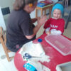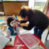 Fin de trimestre, fin de projet et dernière réalisation d’art visuel: des masques en plâtre. La première partie de l’activité était un moment de relaxation pour les bouts de chou, car c’est comme s’ ils étaient dans un “Salon de beauté”.