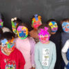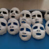 Dans un premier temps, on leur mettait un bandeau sur la tête pour qu’aucun cheveux ne dépasse, puis, on leur appliquait une couche de vaseline sur le visage pour ne pas que le plâtre colle à la peau. Ensuite, on leur posait des bandes de plâtre tièdes afin de prendre l´empreinte du visage. Une fois les masques secs, ils les ont peints en toute liberté….. et ils étaient très fiers d’eux……….