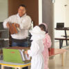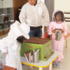 En art, ils ont également créé des abeilles. L’expérience a été gratifiante puisque les élèves ont travaillé sur des projets en français (vocabulaire, compréhension, expression écrite et orale), en mathématiques (formes géométriques), en sciences (le cycle de vie des abeilles et leur rôle dans la biodiversité) ainsi qu’en art. Le projet a culminé avec la visite de M. Porto, apiculteur à La Joya, que nous remercions pour sa générosité: il a montré aux élèves ses ruches, ses combinaisons de protection, ses outils pour soigner les abeilles et récolter le miel.