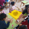 L’abeille est l’un des animaux les plus faciles à observer. Durant cette période les élèves ont consacré beaucoup de temps aux abeilles. A partir de la lecture et du travail sur le livre “Le voleur de miel”, les élèves ont commencé à chercher des informations et à les partager au sein de la classe ; ils ont visionné un court documentaire qui les a aidés à créer les 3 types de ruches (terre, bois et paille) en matériaux de récupération, qui sont maintenant exposées dans la classe.