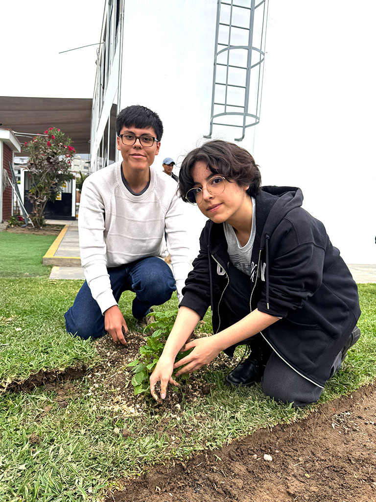 Au cours de la première semaine du mois de novembre, le Collège franco-péruvien de Lima a mené une campagne de végétalisation interne. Coïncidant avec le séjour à Lima de Maya Berríos et José Belón, nos élèves du secondaire qui étaient venus passer leurs examens respectifs ont eu l’occasion de participer à cette activité avec la classe qui les a accueillis.