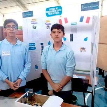 Uno de los cuatro equipos que nos representó en la Feria de Ciencias EUREKA el dia jueves 21 del presente año, fue elegidos dentro de los 10 primeros proyectos por encima de 76 colegios participantes dentro del área de alternativa de solución tecnológica. El equipo está conformado por nuestros alumnos Santiago Alfaro y Joaquín Ojeda, con el proyecto “Sistema de irrigación por bluetooth”.