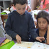 L’étape suivante était un moment très attendu par les élèves de GS, celui de découvrir les cahiers et livres utilisés par leurs camarades de CP. C’est avec beaucoup de curiosité et d’intérêt qu’ils ont observé et écouté leurs aînés leur expliquer les différents travaux réalisés au cours de l’année.