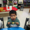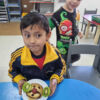 Cada uno ha traído frutas de la casa para hacer una ensalada de frutas. Teníamos que usar todas las frutas para descubrir nuevos sabores, también cortamos las frutas nosotros mismos porque ya somos grandes y hemos descubierto cómo hacer compost y su utilidad.