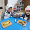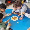 Nous avons chacun ramené des fruits de la maison pour faire une salade de fruits. Nous devions utiliser tous les fruits pour découvrir de nouvelles saveurs, nous avons aussi coupé nos fruits comme des grands et découvert comme faire du compost et son utilité.