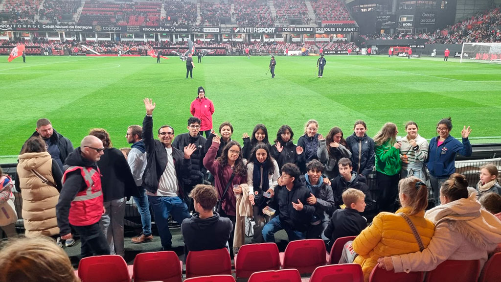 En plus de leur vie scolaire, les jeunes ont pu profiter d’activités très spéciales : assister à un match de l’équipe locale Avant Guingamp au stade de Roudourou, faire des excursions avec leurs familles d’accueil dans des lieux emblématiques comme le Mont Saint-Michel. Ils ont également participé à une visite guidée et à une exposition commémorative sur le rôle du lycée comme lieu de résistance pendant la Seconde Guerre mondiale, une expérience riche en histoire et en réflexion.