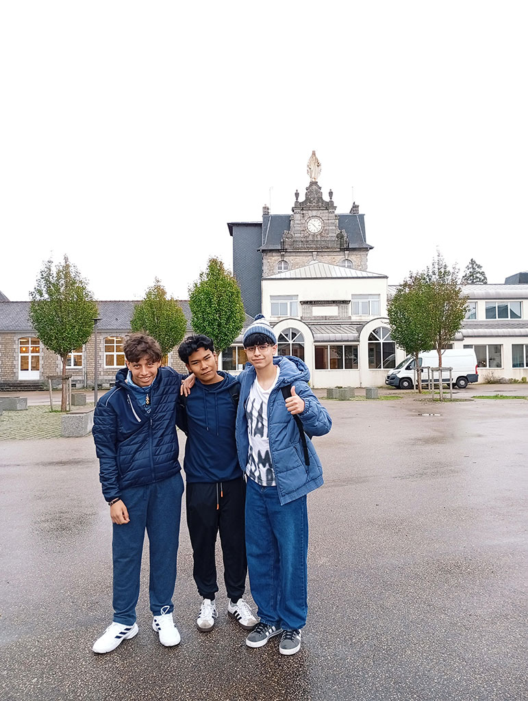 A pocos días de haber llegado a la ciudad de Guingamp, en el norte de Bretaña, nuestros estudiantes de 3ro. de secundaria, 3ème, ya están completamente inmersos en la vida escolar y familiar francesa. Los alumnos vienen disfrutando de interesantes jornadas de aprendizaje y convivencia. Cada uno ha sido acogido con calidez por familias francesas que les abren las puertas de su hogar, compartiendo con ellos sus costumbres, idioma y tradiciones. En el Lycée Notre-Dame, los estudiantes participan de las clases, observan la dinámica del sistema educativo francés y viven en primera persona el intercambio cultural que año a año fortalece nuestra comunidad educativa.