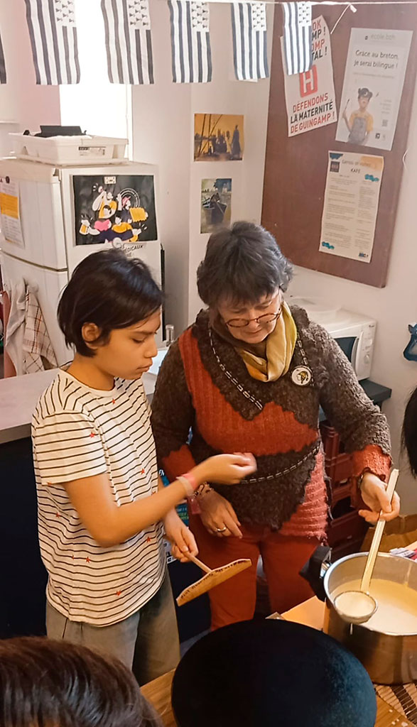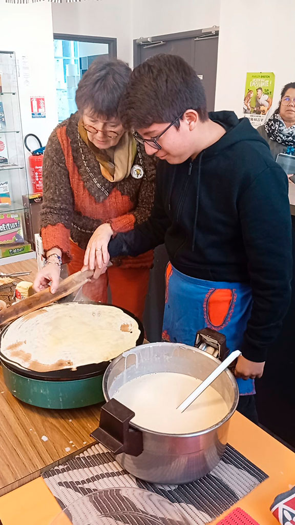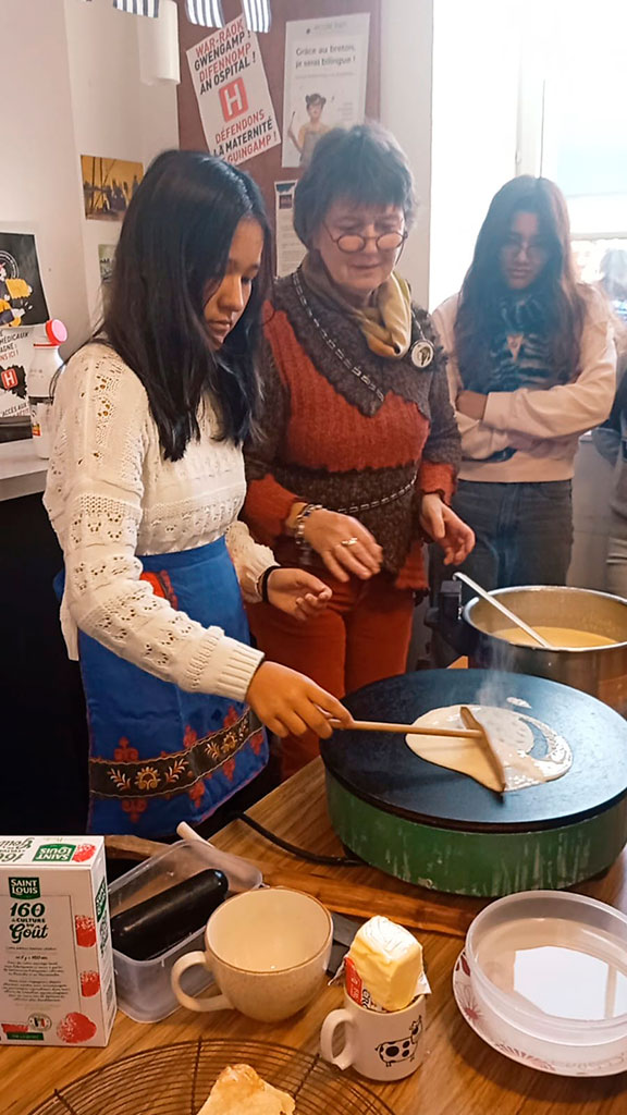 La semaine du 13 au 17 octobre était la dernière que nos élèves de 3ème passaient au Lycée Notre-Dame de Guingamp, et elle a été riche en expériences qui resteront à jamais gravées dans leur mémoire. La semaine a commencé sur les chapeaux de roue : nos élèves ont participé à un atelier ludique sur les crêpes et les danses bretonnes au Centre culturel breton, où ils ont appris à préparer les crêpes traditionnelles et se sont essayés aux pas de danse locale. Une façon délicieuse et divertissante de s’immerger dans la culture bretonne.
