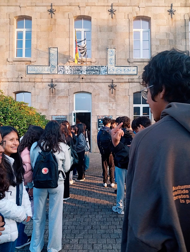 La semana del 13 al 17 de octubre fue la última que nuestros estudiantes de 3ro. de secundaria (3ème) pasaron en el Lycée Notre-Dame de Guingamp, y estuvo llena de experiencias que quedarán para siempre en su memoria. La semana comenzó con energía: nuestros chicos participaron en un divertido taller de crêpes y danzas bretonas en el Centro Cultural Bretón, donde aprendieron a preparar los tradicionales crêpes y se animaron a seguir los pasos de la danza local. Fue una manera deliciosa y entretenida de sumergirse en la cultura bretona.