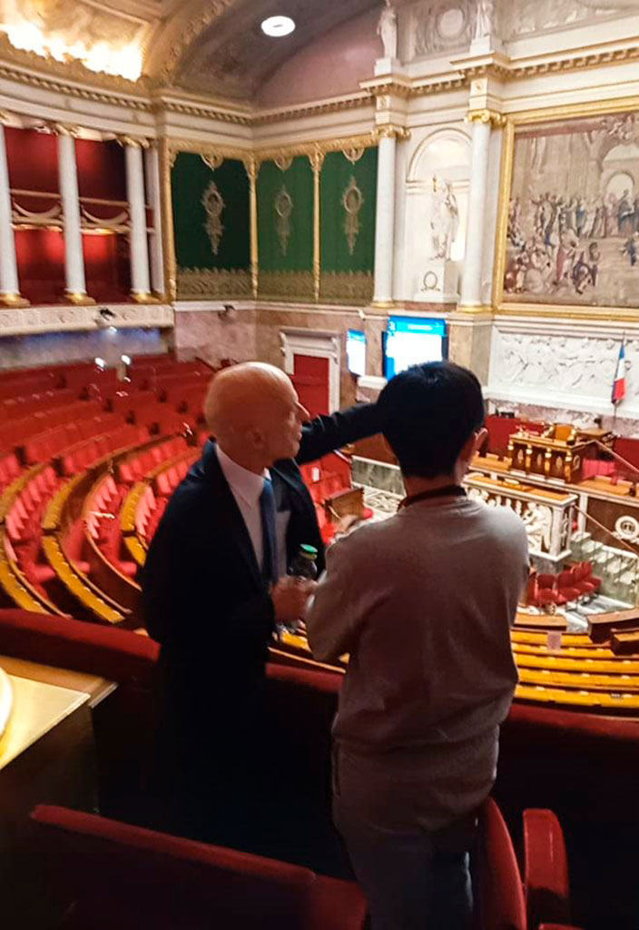 El jueves comenzó con una visita a uno de los íconos más reconocidos del mundo: la Torre Eiffel. Debido a una fuerte tempestad, el acceso al nivel más alto estaba cerrado, por lo que solo pudimos subir a uno de sus pisos. Aun así, contemplar la ciudad desde esa altura fue una experiencia que deslumbró a todos. Luego, nos dirigimos al Museo Quai Branly – Jacques Chirac, dedicado a las artes y culturas del mundo, donde exploramos la fascinante exposición “Amazonia”, un recorrido visual y sonoro que invita a reflexionar sobre la biodiversidad y las comunidades indígenas del Amazonas. Por la tarde, tuvimos el honor de visitar la Asamblea Nacional de Francia, gracias a la invitación del diputado francés para América Latina, conociendo de cerca el funcionamiento del poder legislativo y su imponente arquitectura.