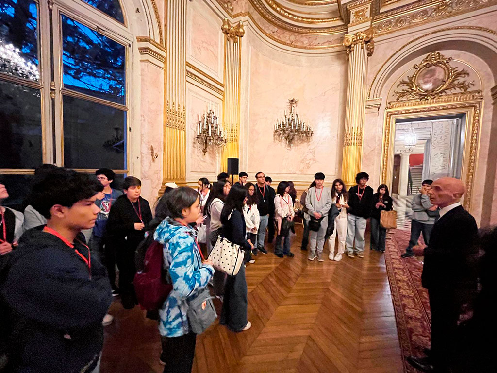 Le jeudi a commencé par une visite de l’un des monuments les plus célèbres au monde : la tour Eiffel. En raison d’une forte tempête, l’accès au dernier étage était fermé, nous n’avons donc pu monter qu’à l’un des étages. Malgré tout, contempler la ville depuis cette hauteur a été une expérience qui nous a tous émerveillés. Nous nous sommes ensuite rendus au musée du Quai Branly – Jacques Chirac, dédié aux arts et aux cultures du monde, où nous avons exploré la fascinante exposition « Amazonie », un parcours visuel et sonore qui invite à réfléchir sur la biodiversité et les communautés indigènes de l’Amazonie. Dans l’après-midi, nous avons eu l’honneur de visiter l’Assemblée nationale française, grâce à l’invitation du député français pour l’Amérique latine, et de découvrir de près le fonctionnement du pouvoir législatif et son architecture imposante.