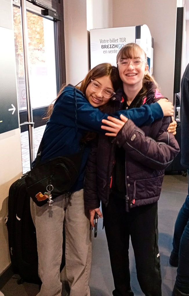 En Francia, nuestro sincero reconocimiento al Lycée Notre-Dame de Guingamp, a su directora, Stéphanie Geslouin, a la profesora Anne-Marie Auffray, encargada del intercambio, gracias por su cálida acogida y colaboración constante; a las familias anfitrionas, por abrir sus hogares y corazones; y a la profesora Marie-France, por guiarnos y compartir con nosotros su conocimiento y cariño durante la estadía en París.