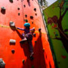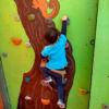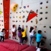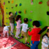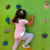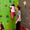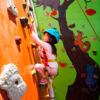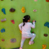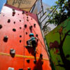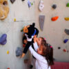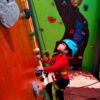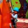 La semana pasada los alumnos de 2-3 años fueron al CCM (Centro Cultural de Montaña) para escalar. Primero jugaron a coger piezas de la pared, cada vez más arriba, para armar un collar o un castillo. También pudieron subir con arnés y casco y aprendieron la posición para bajar.