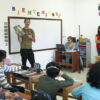 Vendredi dernier, le 21, nous avons eu la visite de l’illustrateur français Étienne Friess. Il nous a parlé de son parcours . Il a mis son talent au service des élèves de CM1 . Au cours de l’atelier ,ils ont créé une carte au trésor.